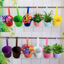 Painted metal pots can be used to plant herbs bulbs or flowers.